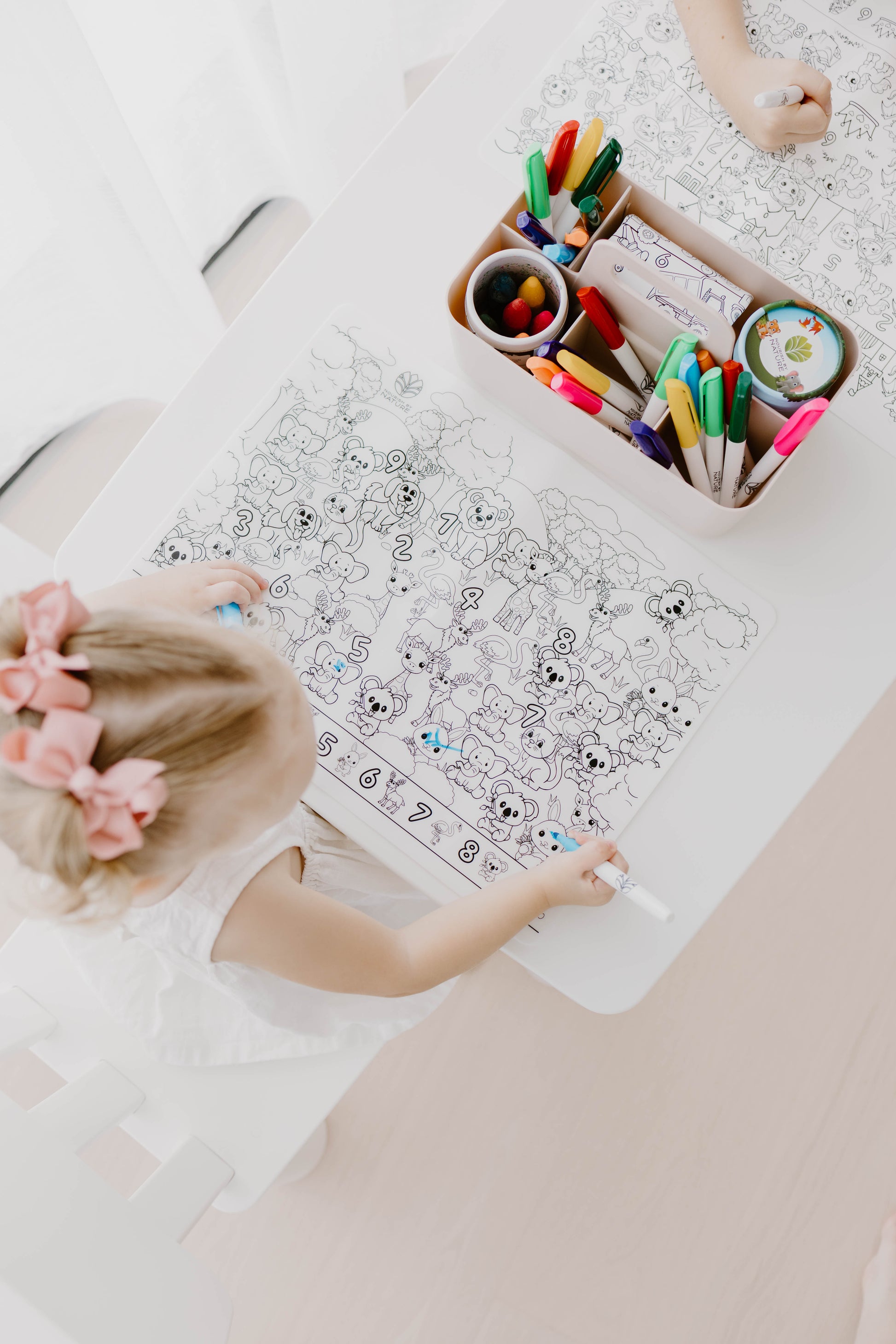 Made from 100% food-grade, non-toxic silicone, the mat is safe for kids and the environment. It’s reusable, easy to clean, and perfect for repeated colouring sessions—just wipe it down and start again! This durable mat is great for both at-home play or on-the-go entertainment, encouraging creativity and early numeracy skills in a sustainable, zero-waste way